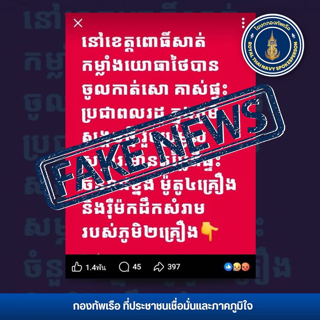 เมื่อวันที่ 5 มกราคม 2569 พล.ร.ต.ปารัช รัตนไชยพันธ์ โฆษกกองทัพเรือ เปิดเผยว่า ตามที่มีการเผยแพร่ข้อมูลและข่าวสารทางสื่อสังคมออนไลน์ซึ่งอาจก่อให้เกิดความเข้าใจว่า กำลังพลของกองทัพเรือภายหลังการยึดคืนพื้นที่ ได้มีการนำทรัพย์สินมีค่าของทหารหรือประชาชนชาวกัมพูชาไปเป็นของตนเองนั้น สำนักงานโฆษกกองทัพเรือขอเรียนชี้แจงต่อประชาชนชาวกัมพูชาว่า ข้อมูลดังกล่าว ไม่เป็นความจริง