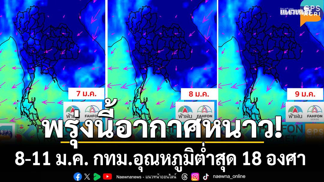 โดยระบุว่า เตรียมเย็นลง เริ่มพรุ่งนี้ 7 ม.ค. ถึง 12 ม.ค. ! ช่วง 8-11 ม.ค. กรุงเทพฯ อุณหภูมิต่ำสุด 18-19 องศา ! ช่วง 13-15 ม.ค. จะอุ่นขึ้น !