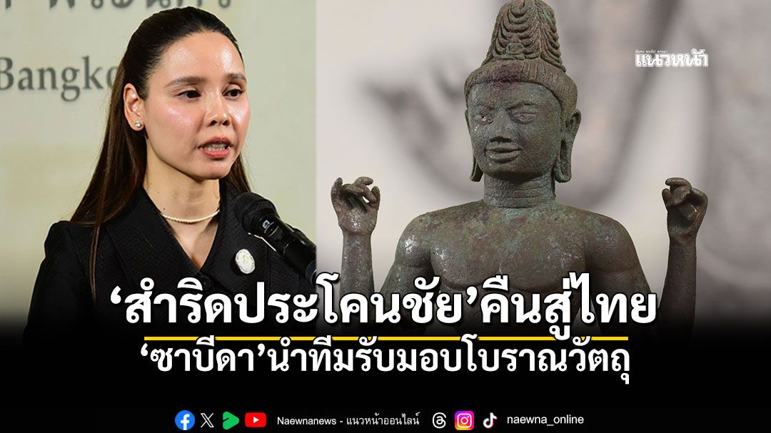 'ซาบีดา' นำทีมรับ 'สำริดประโคนชัย' คืนสู่ไทย ย้ำจุดยืนติดตามโบราณวัตถุทุกชิ้นกลับบ้าน