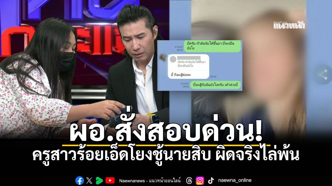 ผอ.ร้อยเอ็ดสั่งฟัน! ตั้งกรรมการสอบครูสาว โยงชู้ชายนายสิบ ลั่นหากผิดจริงสั่งย้ายพ้นพื้นที่ทันที
