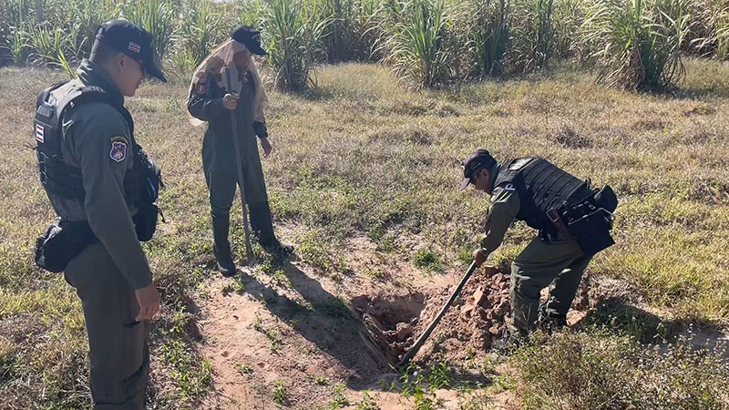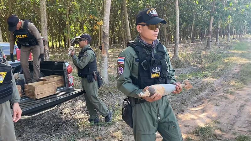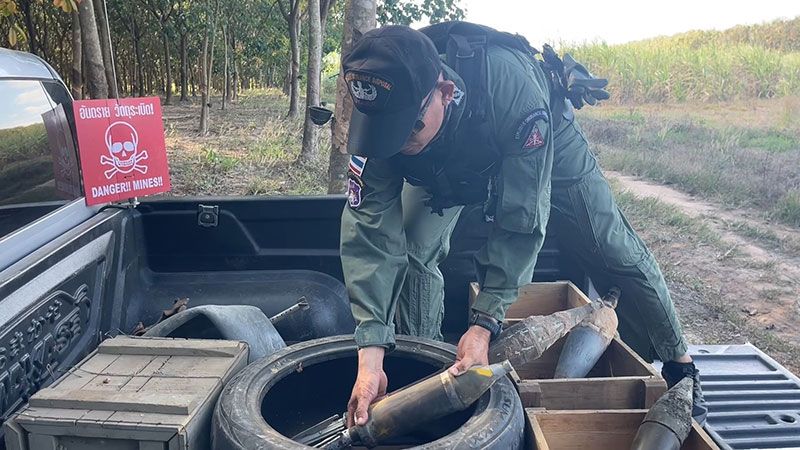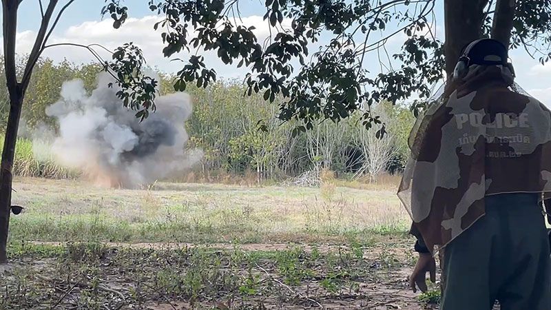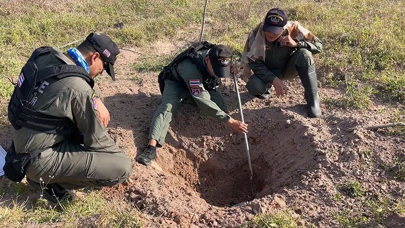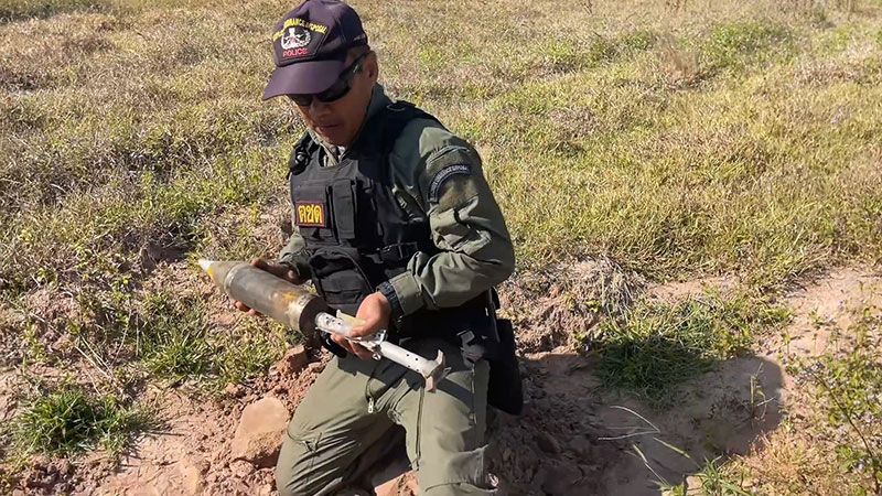 สุรินทร์ EOD ชุดที่ 2 เร่งทำลายวัตถุระเบิดเขมรตกค้างรอบบ่ายอีกจำนวน 4 ลูก ท้ายหมู่บ้านใกล้ปราสาทตาเมือนธม หลังช่วงเช้าทำลายไปจำนวน 12 ลูก