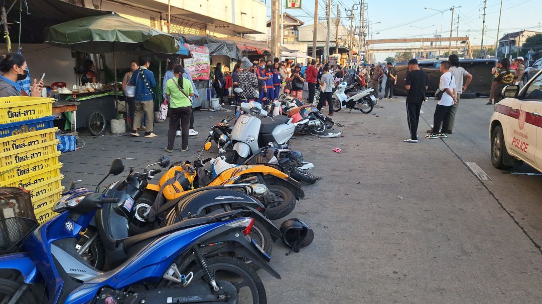 จากการสอบถาม นางสาววิลาวัลย์ อินถนอม อายุ 50 ปี แม่ค้าขายกาแฟใกล้ที่เกิดเหตุ เล่าว่า ในตอนเกิดเหตุนั้นตนไม่เห็นเนื่องจากยืนทำธุระอยู่ข้างตู้ แต่ได้ยินเสียงรถเบรกเสียงดังก่อนที่จะได้ยินเสียงชนโครมดังสนั่นและเห็นรถกระบะคว่ำอยู่บนถนน ก่อนที่จะเห็นคนในรถตะกายออกมาจากตัวรถ ซึ่งรถจักรยานยนต์ทั้งหมดเป็นของพนักงานในบริษัทผลิตธุรกิจโรงพิมพ์และบรรจุภัณฑ์แห่งหนึ่งซึ่งอยู่ใกล้ที่เกิดเหตุ โดยน่าจะเป็นของพนักงานที่เข้าใหม่ ซึ่งปกติทั่วไปทางบริษัทจะคอยประกาศให้พนักงานไปจอดบริเวณลาดจอดรถที่จัดเตรียมไว้แต่รถทั้งหมดนี้น่าจะเป็นของพนักงานที่เข้ามาทำงานใหม่จึงยังไม่ทราบกฎหรืออาจมาแอบจอดทิ้งไว้ ก่อนที่จะถูกรถกระบะเฉี่ยวชนจนพังเสียหายหลายจำนวนมาก