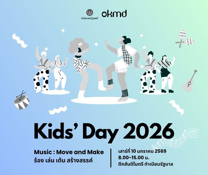 ที่ทำเนียบรัฐบาล ณ ตึกสันติไมตรี OKMD จัดบูธกิจกรรมในงานวันเด็กแห่งชาติ ระหว่างเวลา 08.00–15.00 น. ภายใต้ธีม “Music : Move and Make ร้อง เล่น เต้น สร้างสรรค์” เปิดพื้นที่ให้เด็กและเยาวชนได้เรียนรู้ผ่านดนตรี การเคลื่อนไหว และกิจกรรมเชิงสร้างสรรค์ที่ออกแบบเป็นช่วงเวลาอย่างต่อเนื่อง ทั้งเกมการเรียนรู้ การร้องเพลงตามโจทย์ การเต้นประกอบจังหวะ และกิจกรรมประดิษฐ์เครื่องดนตรี DIY เช่น ลูกแซกและไข่เขย่า เพื่อส่งเสริมการแสดงออก การทำงานร่วมกัน และการพัฒนาทักษะรอบด้านกิจกรรมดังกล่าวจัดขึ้นภายใต้แนวคิด Talent Everywhere ซึ่งมุ่งเปิดพื้นที่ให้เด็กและเยาวชนที่มีความสนใจด้านดนตรีได้แสดงศักยภาพในเวทีสาธารณะ และสะท้อนแนวทางการพัฒนาการเรียนรู้ที่เชื่อมโยงทักษะ ความคิดสร้างสรรค์ และโอกาสในการต่อยอดสู่เส้นทางอาชีพในอนาคต