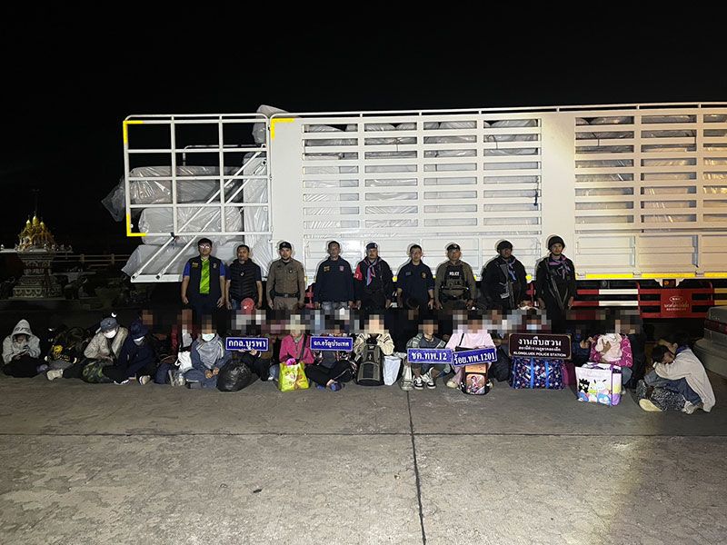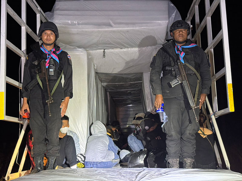 เจ้าหน้าที่สนธิกำลังบุกรวบ 37 แรงงานเถื่อนชาวเขมร ลอบเข้าไทยคารถบรรทุก 6 ล้อ