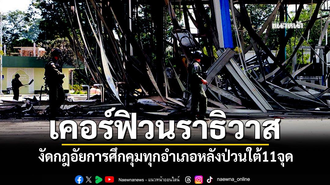 พร้อมกันนี้ มีการประกาศ ห้ามบุคคลออกนอกเคหะสถาน (เคอร์ฟิว) ในพื้นที่จังหวัดนราธิวาส ระหว่างเวลา 21.00–05.00 น. เว้นแต่กรณีมีเหตุจำเป็นเร่งด่วน ซึ่งต้องขออนุญาตจากเจ้าหน้าที่ทหาร ตำรวจ หรือฝ่ายปกครองในพื้นที่