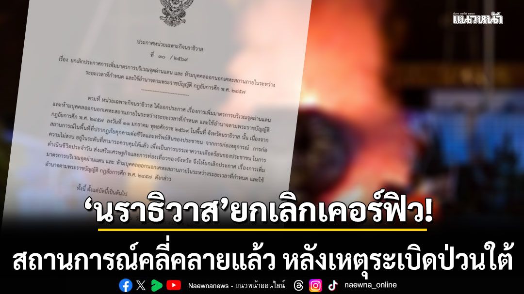ตามที่หน่วยเฉพาะกิจนราธิวาสได้ออกประกาศ เรื่องการเพิ่มมาตรการบริเวณจุดผ่านแดนและห้ามบุคคลออกนอกเคหะสถานภายในระหว่างระยะเวลาที่กำหนด และใช้อำนาจตามพระราชบัญญัติกฎอัยการศึก พ.ศ.2457 ลงวันที่ 11 มกราคม พุทธศักราช 2569 ในพื้นที่จังหวัดนราธิวาสนั้น