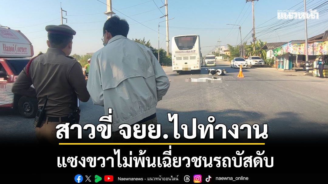 สาวโรงงานขับจยย.แซงขวาไม่พ้นเฉี่ยวชนรถบัสรับ-ส่งพนักงานเสียชีวิต