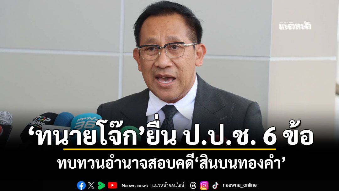 "ทนายความบิ๊กโจ๊ก"ยื่นหนังสือถึง ป.ป.ช. 6 ข้อ ให้ทบทวนอำนาจสอบคดีสินบนทองคำ ชี้ขั้นตอนการสืบสอบสวนผิดมาตั้งแต่ชั้นตำรวจ เหตุมีกรรมการ ป.ป.ช.ตกเป็นผู้ถูกกล่าวหาด้วย