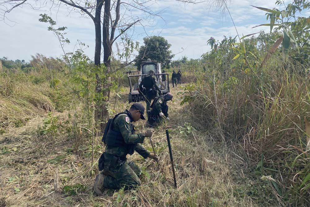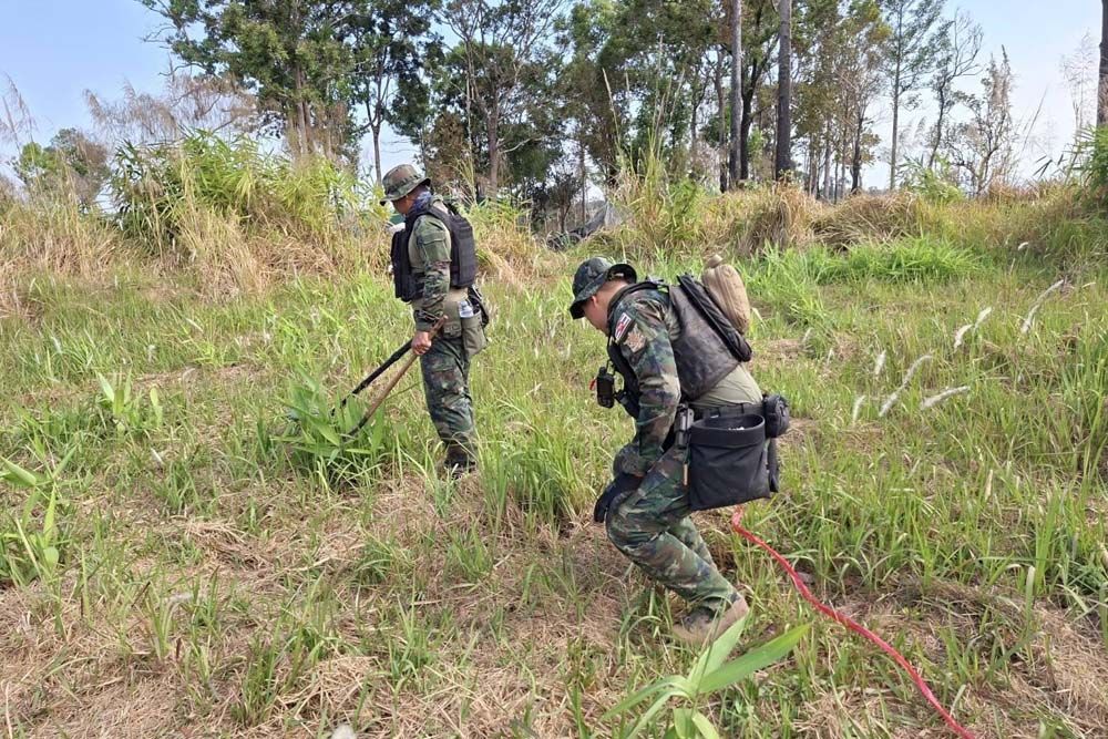 กองทัพไทยเดินหน้าภารกิจเสี่ยงตาย เคลียร์พื้นที่กู้ระเบิด ลุยพรมแดนตราด ทำลายลูกบึ้มขนาด 120 มม. คืนพื้นที่ปลอดภัยให้ชาวบ้านชายแดนไทย-กัมพูชา