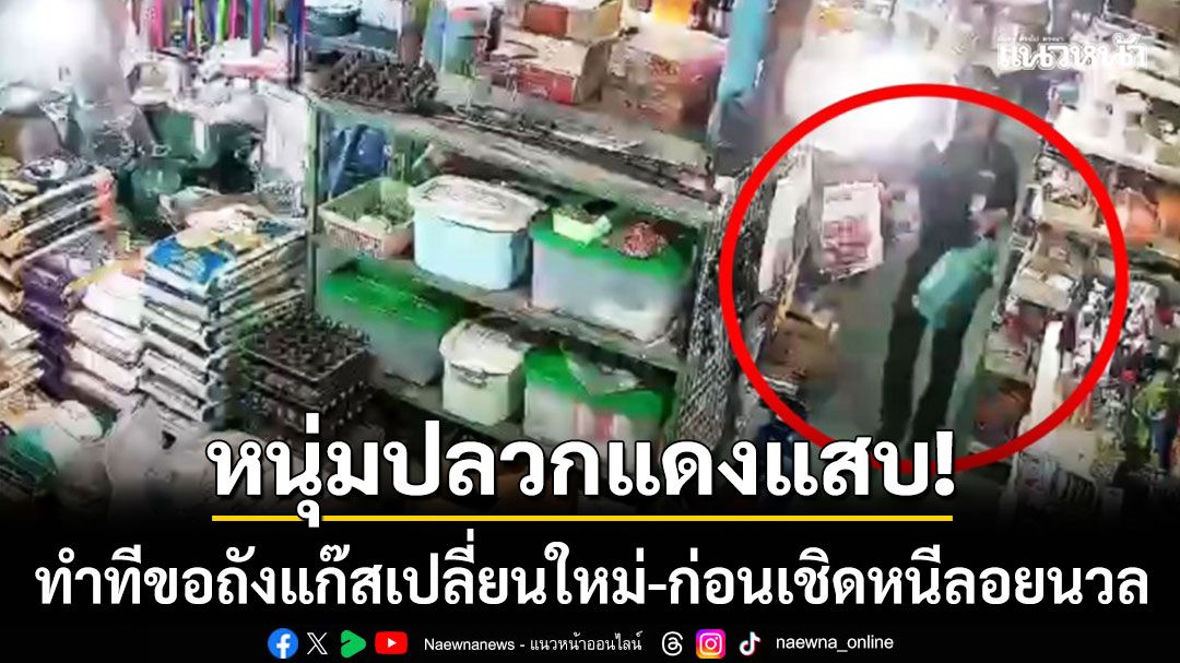 เนียนเกินไป! หนุ่มแสบฉกถังแก๊สเปล่าหน้าร้านชำปลวกแดง ทำทีขอเปลี่ยนใบใหม่ จ่ายแค่ค่าแก๊สเชิดถังหนีลอยนวล