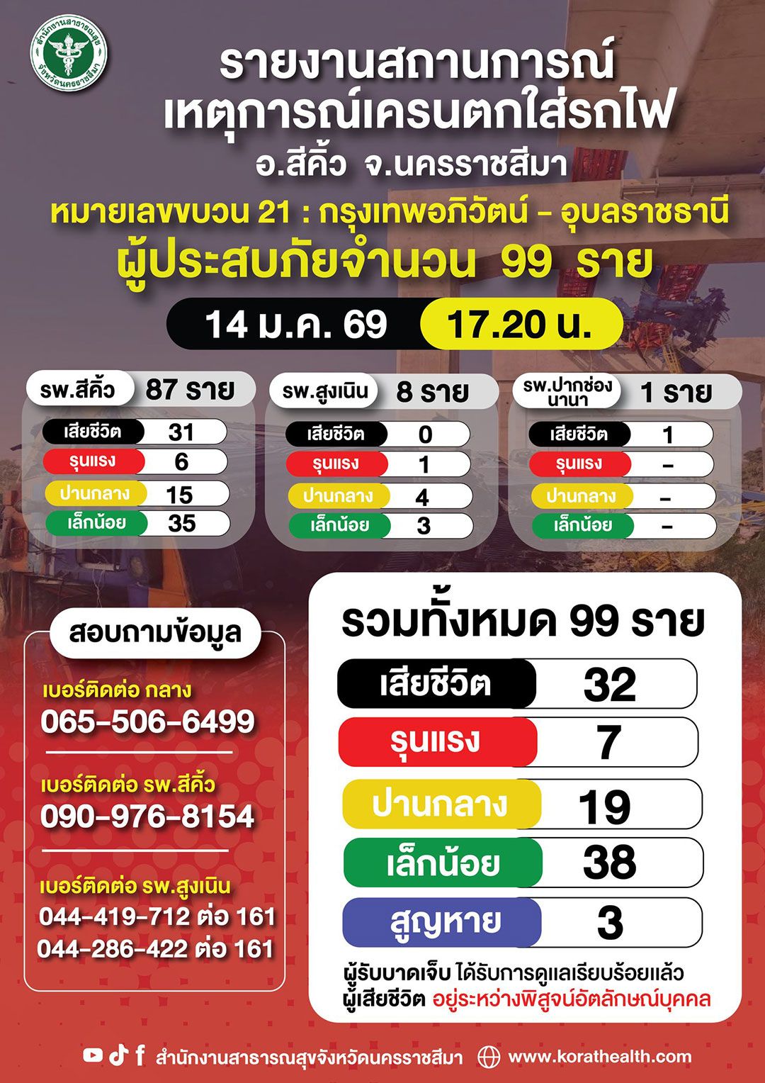 เมื่อวันที่ 14 มกราคม 2569 เพจเฟซบุ๊ก "สำนักงานสาธารณสุขจังหวัดนครราชสีมา" โพสต์ข้อความระบุว่า Update : 14 ม.ค. 69 เวลา 17.20 น.
