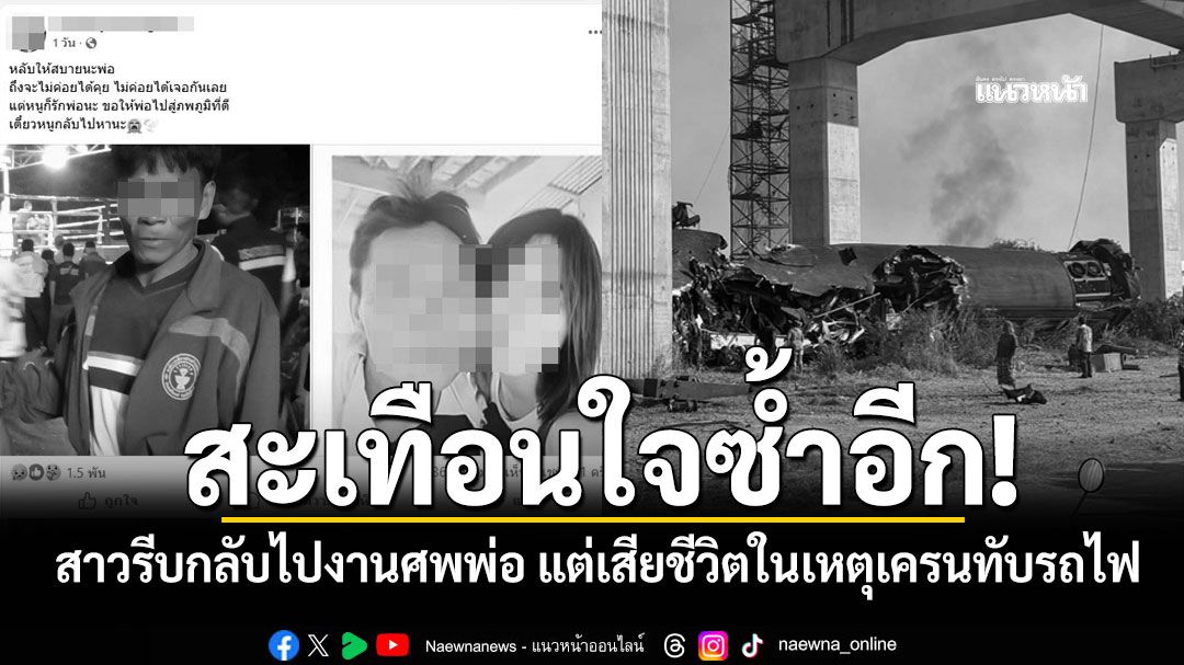 สะเทือนใจซ้ำอีก! สาวกำลังกลับไปงานศพพ่อ แต่กลับเป็นหนึ่งในผู้เสียชีวิตเครนหล่นทับรถไฟ ที่โคราช ขณะที่แฟนหนุ่มโพสต์ใจแตกสลาย