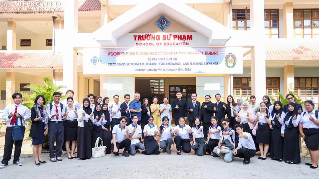 ผู้สื่อข่าวรายงานว่า คณะครุศาสตร์ มหาวิทยาลัยราชภัฏสงขลา (มรภ.สงขลา) จัดโครงการส่งเสริมความร่วมมือการแลกเปลี่ยนการเรียนรู้ด้านครุศาสตร์ ณ Can Tho University สาธารณรัฐสังคมนิยมเวียดนาม ระหว่างวันที่ 9-15 มกราคม 2569 โดย ผศ.ดร.โสภณ ชัยวัฒนกุลวานิช คณบดีคณะครุศาสตร์ ได้นำคณาจารย์ผู้ควบคุมโครงการ อาจารย์ ดร.เอกพล ไพโรจน์ ผู้ช่วยคณบดี ผศ.ดร.จงกล บัวแก้ว ผศ.ดร.ณรงค์ กาญจนะ และ ผศ.ดร.พนัชกร พิทธิยะกุล อาจารย์คณะครุศาสตร์ พร้อมตัวแทนนักศึกษาคณะครุศาสตร์ที่ผ่านการคัดเลือกเข้าร่วมโครงการ จำนวน 18 คน เข้าพบคณะผู้บริหาร School of Education, Can Tho University นำโดย Dr. Le Van Lam, Vice Rector of Can Tho University Assoc. Prof. Huynh Anh Huy คณบดี พร้อมด้วย Assoc. Prof. Tran Van Minh Prof. Lam Quoc Anh และ Dr. Le Van Nhuong รองคณบดี ซึ่งได้ให้การต้อนรับคณะผู้มาเยือนอย่างอบอุ่น