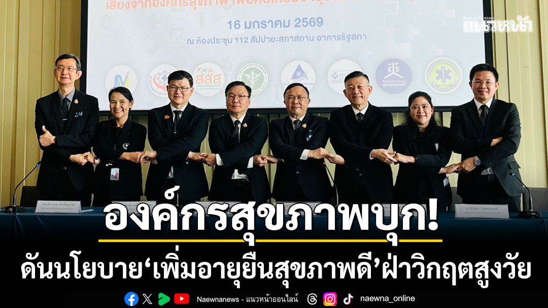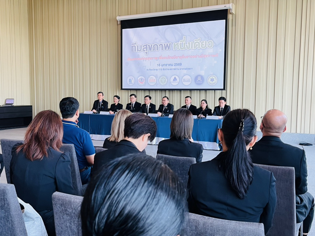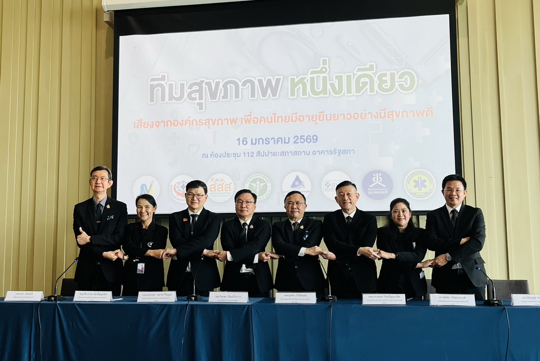 วันที่ 16 มกราคม 2569 นพ.ศุภกิจ ศิริลักษณ์ ผู้อำนวยการสถาบันวิจัยระบบสาธารณสุข (สวรส.) พร้อมด้วยองค์กรสุขภาพระดับชาติ 8 องค์กร ร่วมแถลงข้อเสนอเชิงนโยบายต่อ ‘รัฐบาลชุดใหม่’ ภายใต้กิจกรรม ‘เสียงจากองค์กรสุขภาพ เพื่อคนไทยมีอายุยืนยาวอย่างมีสุขภาพดี’ ซึ่งอยู่ในงาน ‘Policy Watch Connect 2026’ เลือกตั้ง 69 นโยบายสาธารณะ ฝ่าวิกฤตประเทศ ที่สำนักงานคณะกรรมการสุขภาพแห่งชาติ (สช.) ร่วมกับองค์การกระจายเสียงและแพร่ภาพสาธารณะแห่งประเทศไทย (Thai PBS) , วุฒิสภา , สถาบันพระปกเกล้า ,สำนักงานกองทุนสนับสนุนการสร้างเสริมสุขภาพ (สสส.) และองค์กรภาคีเครือข่ายกว่า 40 องค์กร จัดขึ้น ณ อาคารรัฐสภา