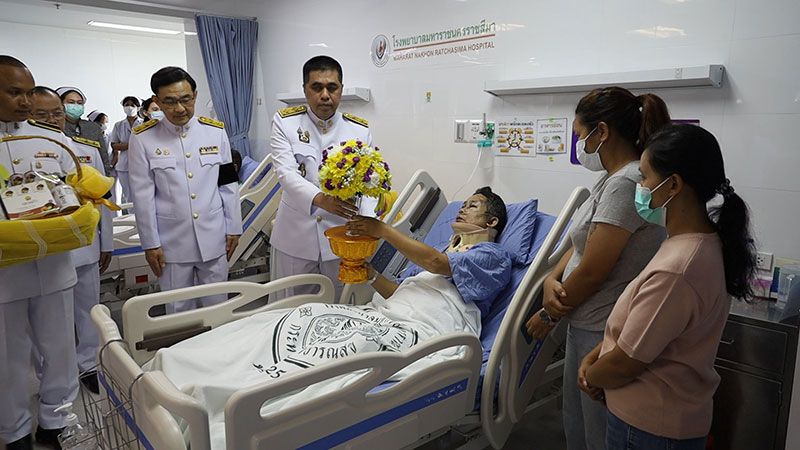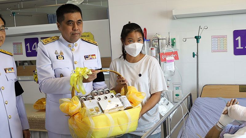 มหามงคลปลื้มปีติ 'ในหลวง–พระราชินี' พระราชทานตะกร้าสิ่งของเยี่ยมผู้บาดเจ็บเหตุเครนถล่มรถไฟสีคิ้ว ทรงรับไว้เป็นคนไข้ในพระบรมราชานุเคราะห์