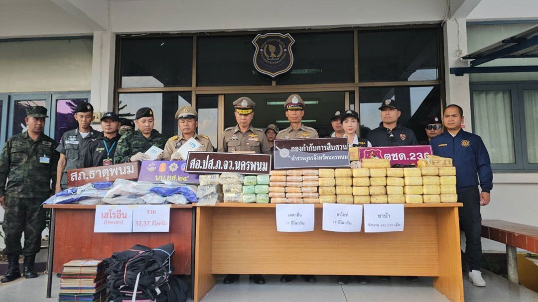 เมื่อวันที่ 16 มกราคม 2569 ณ กองกำกับการสืบสวนตำรวจภูธรจังหวัดนครพนม พล.ต.ต.ศักดิ์ชาย สาดมะเริง ผบก.ภ.จว.นครพนม พร้อมชุดจับกุม แถลงข่าวผลการกวาดล้างยาเสพติดรายใหญ่ 2 คดีซ้อน มูลค่ารวมกว่า 30 ล้านบาท