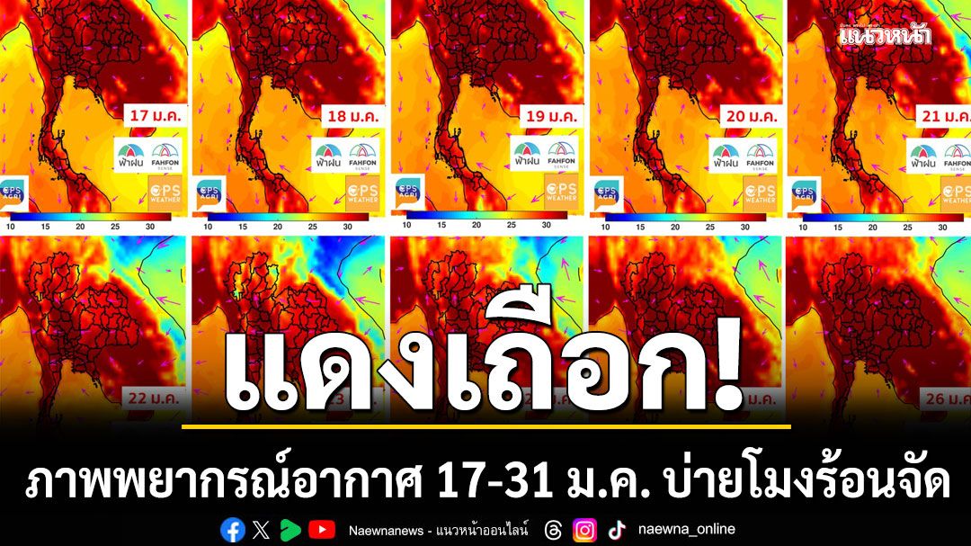 วันที่ 17 มกราคม 2569 เพจเฟซบุ๊ก พยากรณ์อากาศประเทศไทย โพสต์ภาพพยากรณ์อากาศประเทศไทย ตั้งแต่วันที่ 17 มกราคม 2569 ถึง 31 มกราคม 2569 ช่วงเวลา 13.00 น.