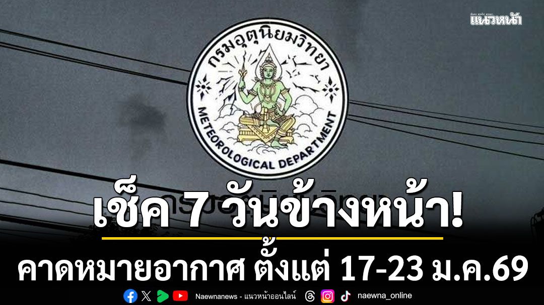 เมื่อเวลา 12.00 น. วันที่ 17 มกราคม 2569 กรมอุตุนิยมวิทยา คาดหมายอากาศทั่วไป พยากรณ์อากาศ 7 วันข้างหน้า ระหว่างวันที่ 17 - 23 มกราคม 2569 ดังนี้