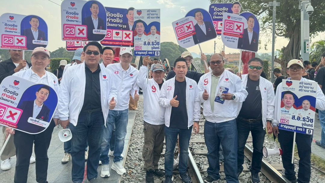 ‘อาร์ท เอกสิทธิ์’ นำพรรคปวงชนไทย ลุยหาเสียงตลาดเมืองกาญจน์ หนุนท่องเที่ยวสกายวอล์คแลนด์มาร์กกระจกใส จุดชมวิวแม่น้ำแคว สูง 360องศา มั่นใจได้ปักธงยกจังหวัด