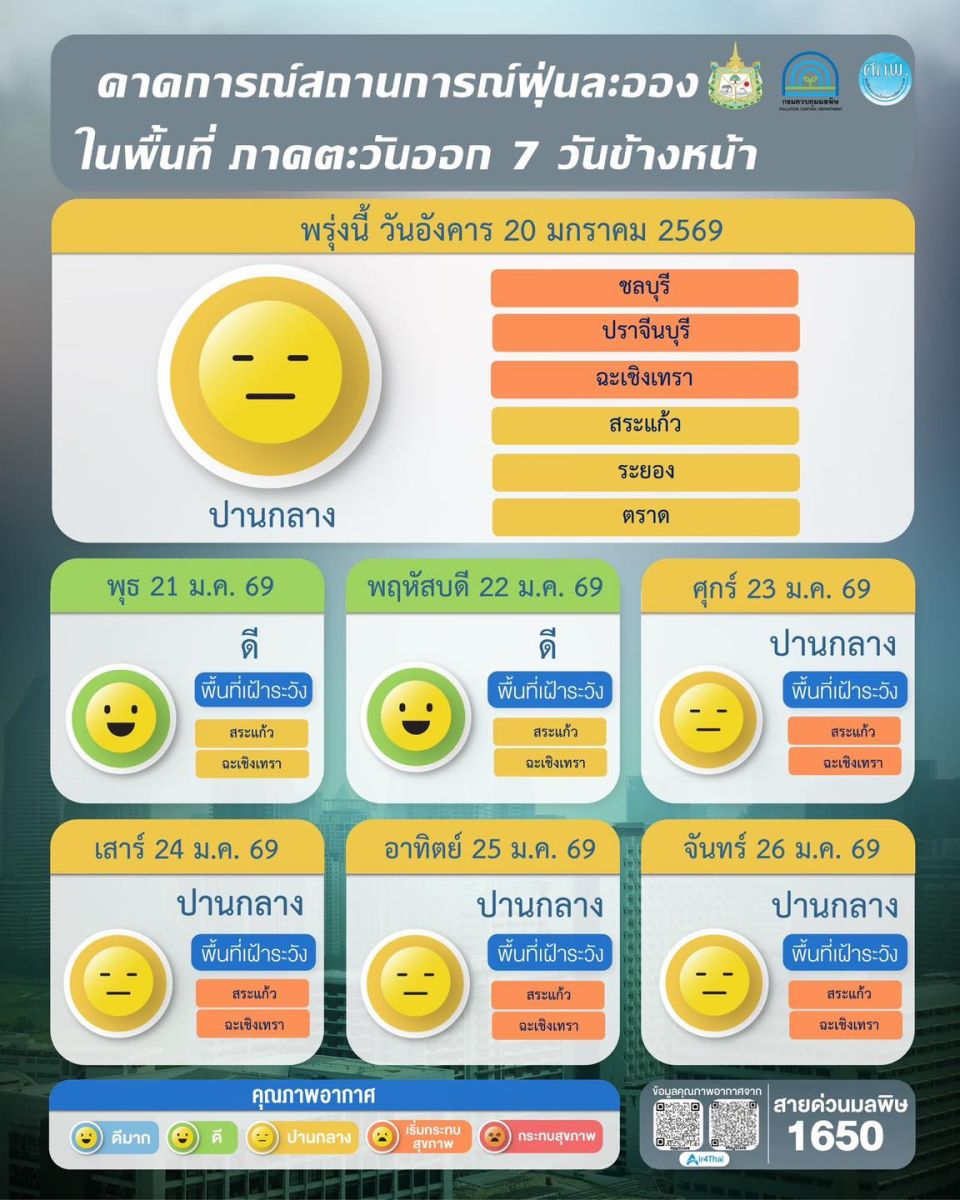 ภาคตะวันออก มีแนวโน้มเพิ่มขึ้นวันที่ 23 – 26 ม.ค.2569 และยังคงต้องเฝ้าระวังบางพื้นที่