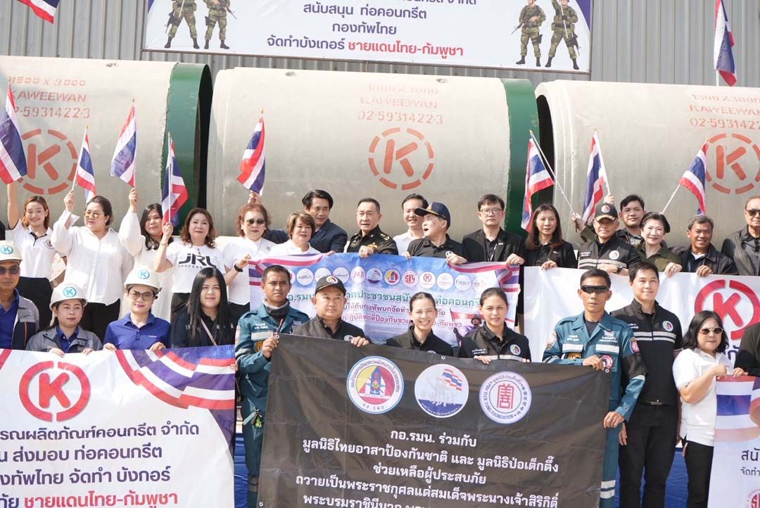 ทั้งนี้ จากความร่วมมือและพลังน้ำใจของภาคประชาชนและมวลชนจากหลายพื้นที่ ได้มีการทยอยส่งมอบวัสดุและสิ่งของสนับสนุนอย่างต่อเนื่อง โดย บริษัท กวีวรรณผลิตภัณฑ์คอนกรีต จำกัด ได้ร่วมมอบบังเกอร์สำเร็จรูปจำนวน 50 อัน พร้อมวัสดุประกอบบังเกอร์ ได้แก่ ท่อคอนกรีต เหล็กโครงสร้าง ตาข่าย อวน น้ำหนักรวมประมาณ 4,000 กิโลกรัม รวมถึงวัสดุพรางต่างๆ ซึ่งเป็นอุปกรณ์สำคัญในการเสริมความแข็งแรงของที่มั่น และช่วยลดความเสี่ยงจากภัยคุกคามในพื้นที่ปฏิบัติการ นอกจากนี้ ยังได้มอบผ้าห่ม จำนวน 2,000 ผืน และกางเกงขาสั้น จำนวน 400 ตัว เพื่อแจกจ่ายให้แก่ทหารที่ปฏิบัติหน้าที่อยู่บริเวณแนวหน้า