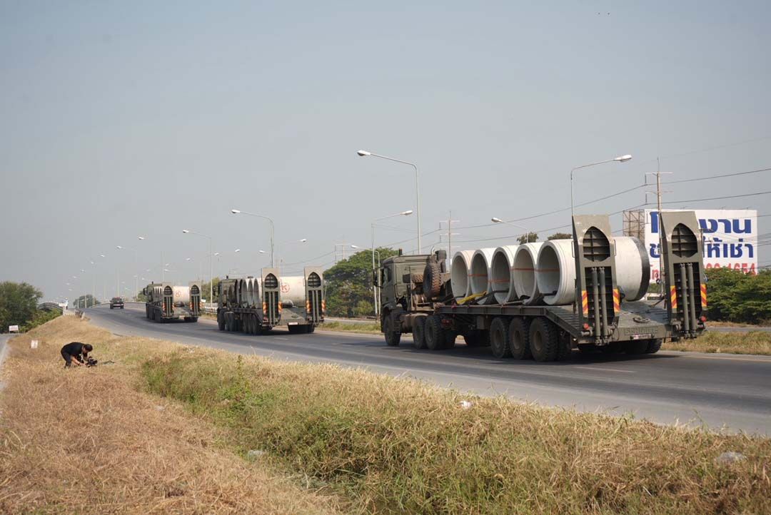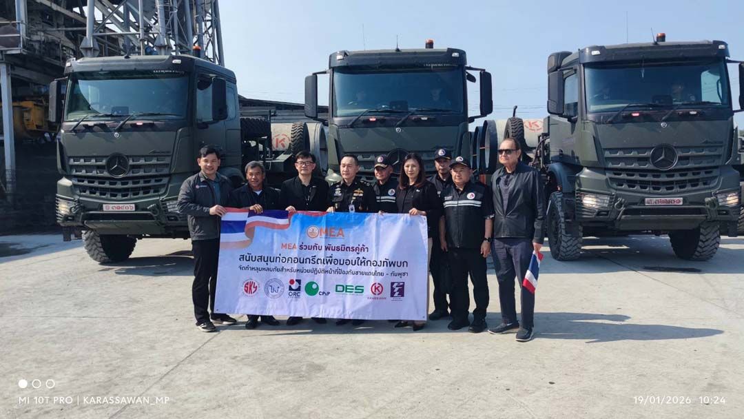 สำหรับวัสดุและอุปกรณ์ที่มีขนาดใหญ่หรือมีน้ำหนักมาก กอ.รมน.ได้ประสานงานร่วมกับกองทัพภาคที่ 2 จัดเตรียมขบวนรถลำเลียงเข้ารับมอบวัสดุ ณ พื้นที่บริษัทฯ โดยใช้รถโลว์เบด จำนวน 8 คัน และรถ FTS จำนวน 2 คัน เพื่อขนย้ายไปยัง จ.สุรินทร์ ส่งมอบให้หน่วยทหารแนวหน้าในพื้นที่รับผิดชอบของกองกำลังสุรนารี ซึ่งมีกำหนดการเดินทางและส่งมอบในวันที่ 19 มกราคม 2569 นี้