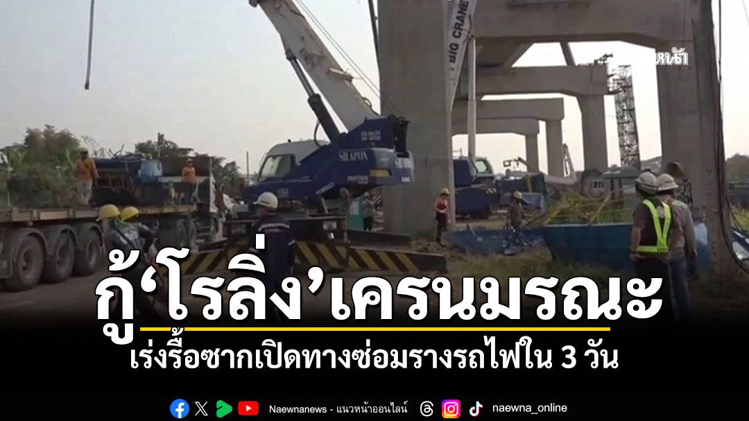 ล่าสุดเจ้าหน้าที่บริษัท อิตาเลียนไทย เดินหน้าปฏิบัติการกู้และรื้อถอนเครนก่อสร้างในพื้นที่เกิดเหตุอย่างต่อเนื่อง โดยเริ่มจากการกู้เครนส่วนด้านบน ตัวสีน้ำเงิน หรือที่เรียกว่า “โรลิ่ง” ลงมาด้านล่าง ก่อนจะเข้าสู่ขั้นตอนถัดไปคือการกู้ “เมนทัช” ตัวสีส้ม ซึ่งเป็นชิ้นส่วนหลักของเครนที่ยังคงอยู่ด้านบน การปฏิบัติงานเป็นไปด้วยความยากลำบาก เนื่องจากต้องคำนึงถึงความปลอดภัยของเจ้าหน้าที่เป็นสำคัญ และจำเป็นต้องใช้ แก๊สตัด ในการแยกชิ้นส่วนเครนทั้ง 2 ตัวออกจากกัน เพื่อให้สามารถนำลงจากที่สูงได้อย่างปลอดภัย ท่ามกลางการดูแลควบคุมพื้นที่อย่างใกล้ชิดจากเจ้าหน้าที่ ตำรวจ สภ.สีคิ้ว, เทศบาลเมืองสีคิ้ว และเจ้าหน้าที่ การรถไฟแห่งประเทศไทย ที่ร่วมตรวจตราและอำนวยความสะดวกการทำงาน โดยตอนนี้ได้นำตัวลอกสีฟ้าลงมาหมดแล้ว แต่ยังเหลือเครนสีส้มที่ต้องเร่งดำเนินการ คาดว่าอีก 3 วันน่าจะดำเนินการได้แล้วเสร็จ