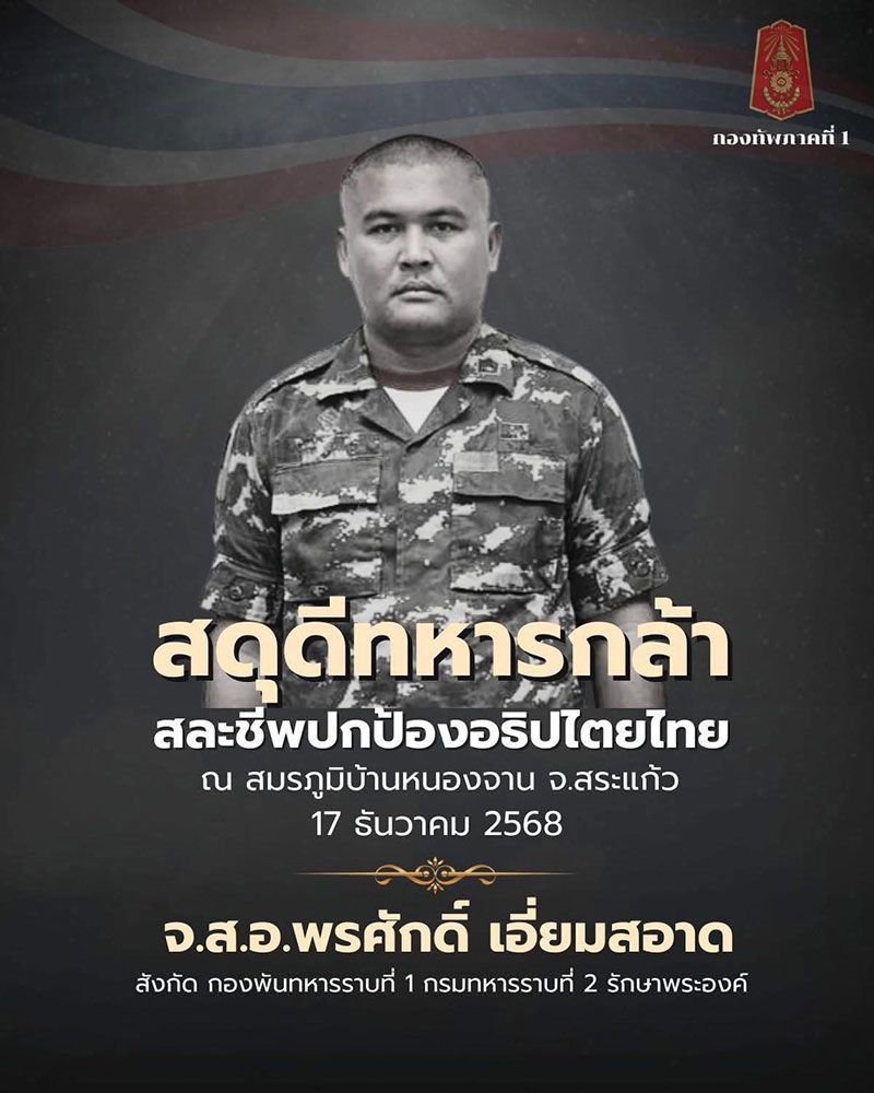 วันที่ 19 มกราคม กองทัพภาคที่ 1 เปิดเผยว่า บริเวณพื้นที่บ้านหนองจาน จ.สระแก้ว ประชาชนและหน่วยงานในพื้นที่ ได้มีการตั้งชื่อสามแยก “เอี่ยมสอาด” เพื่อรำลึกถึงความกล้าหาญและการเสียสละของ จ.ส.อ.พรศักดิ์ เอี่ยมสอาด สังกัด กองพันทหารราบที่ 1 กรมทหารราบที่ 2 รักษาพระองค์ เสียชีวิตจากการปฏิบัติหน้าที่ปกป้องอธิปไตยของชาติ ในพื้นที่ชายแดนไทย-กัมพูชา บ้านหนองจาน จ.สระแก้ว เมื่อ 17 ธ.ค.68 ซึ่งเป็น “ผู้เสียสละคนแรกในสมรภูมิบ้านหนองจาน”