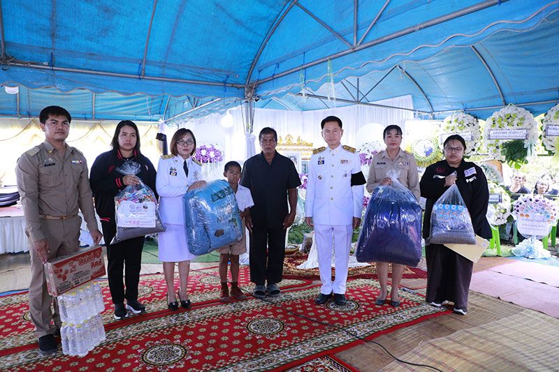 และในวันนี้สำนักงานประกันสังคมจังหวัดบุรีรัมย์มอบเงินบำเหน็จชราภาพผู้ประกันตนมาตรา 33 และมาตรา 39 เป็นเงิน 34,164.76 บาท กิ่งกาชาดอำเภอกระสัง สำนักงานพัฒนาสังคมและความมั่นคงของมนุษย์จังหวัดบุรีรัมย์มอบเงินสงเคราะห์ครอบครัว และจะดำเนินการช่วยเหลือตามโครงการครอบครัวอุปถัมภ์ไปจนกว่าอายุ 18 ปี เนื่องจากบิดา มารดา เสียชีวิตทั้งหมดแล้ว ส่วนพิธีพระราชทานเพลิงศพเป็นกรณีพิเศษมีกำหนดในวันพุธที่ 21 มกราคม 2568 ณ เมรุวัดปทุมคงคา ตำบลบ้านปรือ อำเภอกระสัง จังหวัดบุรีรัมย์.