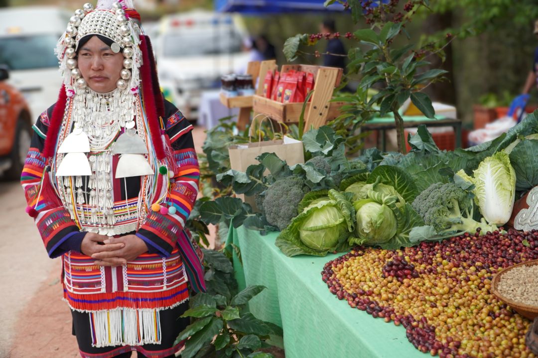 นางสาวอาหมี่ เบี่ยผะ เปิดเผยเพิ่มเติมว่า โครงการได้ให้ความรู้เกี่ยวกับการทำการเกษตรแบบผสมผสาน ส่งเสริมการปลูกไม้ผลและพืชผักเมืองหนาว ตลอดถึงการปลูกข้าวแบบนาขั้นบันไดในพื้นที่เดียวกันและหมุนเวียนการปลูกพืชตามวงรอบฤดูกาลแทนการทำไร่เลื่อนลอยที่ต้องเปลี่ยนพื้นที่ทุกๆ ปี ซึ่งจะต้องตัดต้นไม้แล้วเผาเพื่อเตรียมพื้นที่ก่อนปลูกพืชไร่และต้องใช้พื้นที่ปลูกจำนวนมาก จึงทำให้เกิดภูเขาหัวโล้นแต่เมื่อปรับเปลี่ยนมาปลูกพืชแบบหลากหลายชนิดและต่อเนื่องในพื้นที่เดียวกันตลอดทั้งปี มีการปรับปรุงบำรุงดินอยู่เสมอ รวมทั้งได้รับการส่งเสริมให้ปลูกกาแฟในร่มไม้ทำพื้นที่มีความชุ่มชื้นขึ้น ผลผลิตพืชต่างๆ ก็มีคุณภาพได้ราคา พื้นที่เพียง 10 ไร่ มีรายได้เพิ่มขึ้นถึง 300,000 กว่าบาทต่อปี เมื่อเทียบกับเมื่อก่อนที่ยังไม่มีโครงการซึ่งใช้พื้นที่น้อยกว่าเดิมแต่มีรายได้มากกว่า เนื่องจากปลูกพืชหลายชนิด ผลผลิตชนิดใดราคาตกก็มีชนิดอื่นเข้ามาทดแทน ต่างกับการทำไร่เลื่อนลอยที่ปลูกพืชเพียงชนิดเดียว ปีใดราคาตกก็จะขาดทุน เมื่อก่อนเก็บเงินทั้งปีได้ไม่กี่พันบาท หลังจากทำเกษตรแบบผสมผสานใช้พื้นที่น้อยแต่ผลผลิตดี ทำให้มีรายได้มากขึ้น ชีวิตครอบครัวก็ดีขึ้น ไม่ลำบากเหมือนเมื่อก่อน มีรายได้อย่างต่อเนื่องเพียงพอกับค่าใช้จ่ายในครัวเรือนและมีเหลือเก็บอีกด้วย