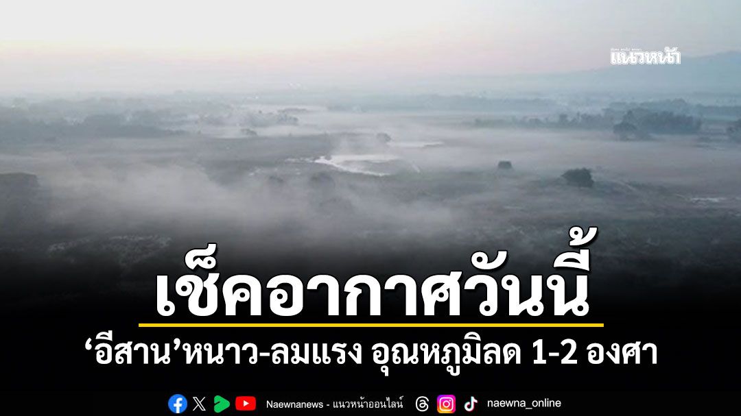 เมื่อวันที่ 21 มกราคม 2569 พยากรณ์อากาศประจำวัน ลักษณะอากาศทั่วไป พยากรณ์อากาศ 24 ชั่วโมงข้างหน้า บริเวณความกดอากาศสูงหรือมวลอากาศเย็นกำลังปานกลางระลอกใหม่จากประเทศจีนได้แผ่ลงมาปกคลุมประเทศจีนตอนใต้และเวียดนามตอนบนแล้ว คาดว่าจะแผ่ลงมาปกคลุมภาคตะวันออกเฉียงเหนือในวันนี้ และจะแผ่ปกคลุมประเทศไทยตอนบนในระยะถัดไป ทำให้ภาคตะวันออกเฉียงเหนือมีอากาศเย็นถึงหนาว และมีลมแรง อุณหภูมิจะลดลง 1–2 องศาเซลเซียส ส่วนภาคเหนือ ภาคกลาง และภาคตะวันออกมีอากาศเย็นกับมีหมอกในตอนเช้า โดยมีหมอกหนาบางพื้นที่บริเวณภาคเหนือ