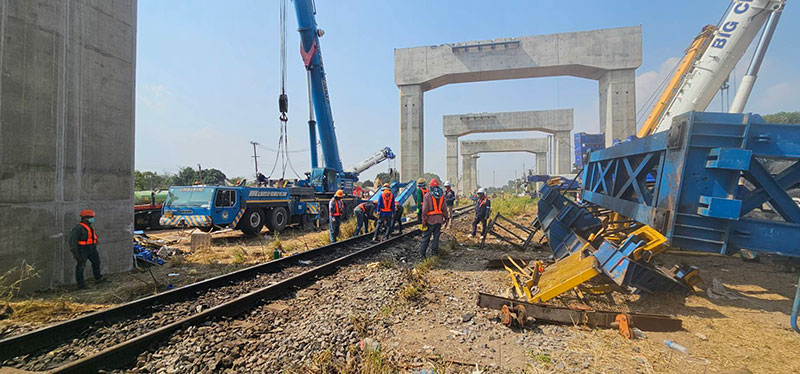 ล่าสุดผู้สื่อข่าวรายงานความคืบหน้าว่า การรถไฟแห่งประเทศไทย (รฟท.) ได้ระดมเครื่องจักรและกำลังพลเข้าดำเนินการ ซ่อมแซมรางรถไฟที่ชำรุดเสียหาย ภายหลังบริษัท อิตาเลียนไทย ดีเวล๊อปเมนต์ จำกัด (มหาชน) สามารถดำเนินการ กู้เครนที่ติดค้างอยู่ด้านบนลงมาได้ทั้งหมดแล้ว ส่งผลให้เจ้าหน้าที่ รฟท.สามารถเข้าพื้นที่ได้เต็มรูปแบบ โดยเจ้าหน้าที่อยู่ระหว่างเร่ง เคลียร์ซากวัสดุ ปรับพื้นที่และเตรียมติดตั้งรางใหม่ เพื่อทดแทนรางเดิมที่ได้รับความเสียหาย ซึ่งมีการเตรียมรางใหม่ไว้แล้วจำนวน 2 ราง รางละ 18 เมตร รวมความยาวทั้งสิ้น 36 เมตร