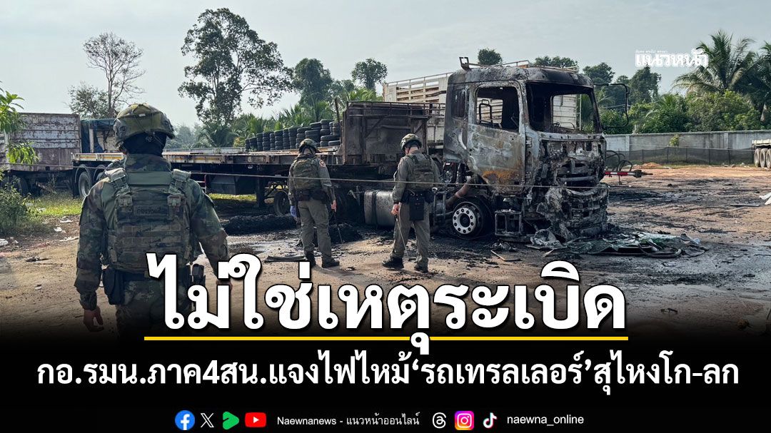 กอ.รมน.ภาค 4 สน.แจงเหตุเพลิงไหม้รถเทรลเลอร์ในพื้นที่สุไหงโก-ลก ยืนยันไม่ใช่เหตุระเบิด อยู่ระหว่างพิสูจน์หาสาเหตุที่แท้จริง
