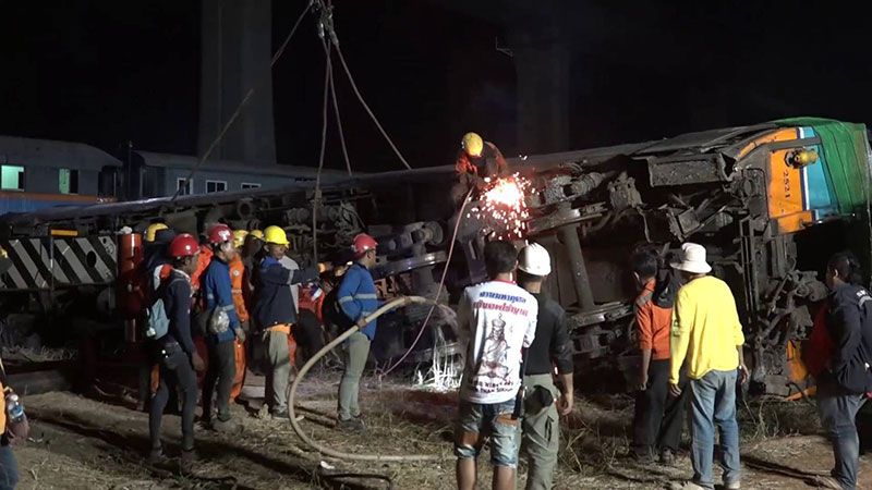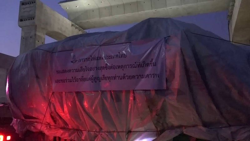 รถไฟทำงานทั้งคืน เร่งย้ายโบกี้มรณะ ขึ้นพ่วง 22 ล้อ พร้อมติดป้ายไว้อาลัยผู้สูญเสีย ส่วนเส้นทางเดินรถไฟรอการพิจารณา