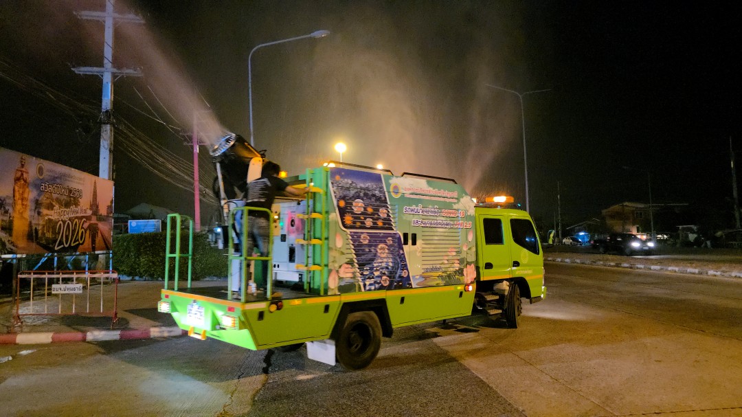 วันที่ 22 มกราคม 2569 ที่สำนักงานองค์การบริหารส่วนจังหวัดปทุมธานี พลตำรวจโท คำรณวิทย์ ธูปกระจ่าง นายก อบจ.ปทุมธานี เป็นประธานในพิธีปล่อยแถวเจ้าหน้าที่และขบวนรถบรรทุกน้ำ เพื่อดำเนินมาตรการป้องกันและลดผลกระทบจากฝุ่นละอองขนาดเล็ก (PM 2.5) ที่กำลังสะสมตัวหนาแน่นจนเข้าขั้นวิกฤตในหลายพื้นที่