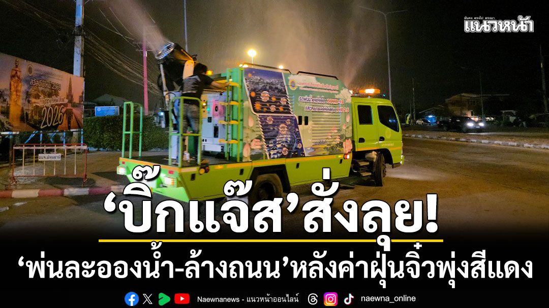 ‘บิ๊กแจ๊ส’ สั่งลุย! ปล่อยแถวระดมฉีดพ่นละอองน้ำ-ล้างถนนทั่วปทุมธานี หลัง PM 2.5 พุ่งสีแดงทะลุ 70 ไมโครกรัม