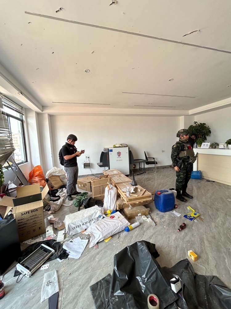จากการเข้าตรวจสอบ พบพยานหลักฐานจำนวนมาก โดยเฉพาะห้องที่จัดทำคล้ายกับสำนักงานตำรวจ และหน่วยงานราชการของประเทศนั้นๆ สะท้อนการจัดการพื้นที่และกระบวนการหลอกลวง ที่มีการวางแผน บริหาร และควบคุมอย่างเป็นระบบ เชื่อมโยงเป็นเครือข่ายอาชญากรรมข้ามชาติ