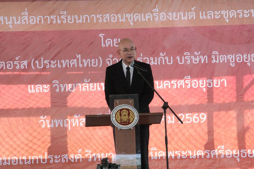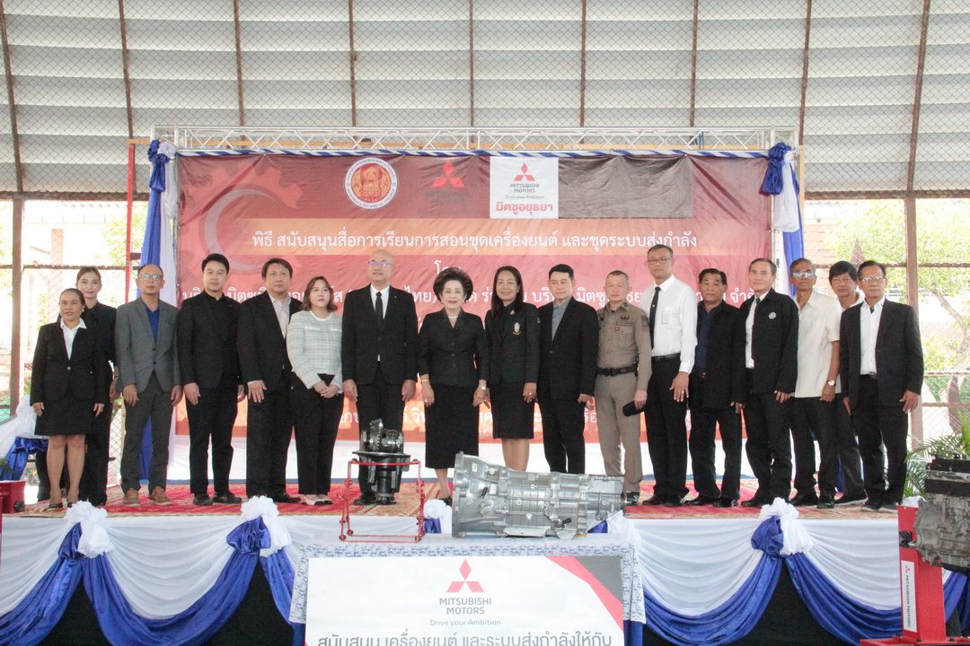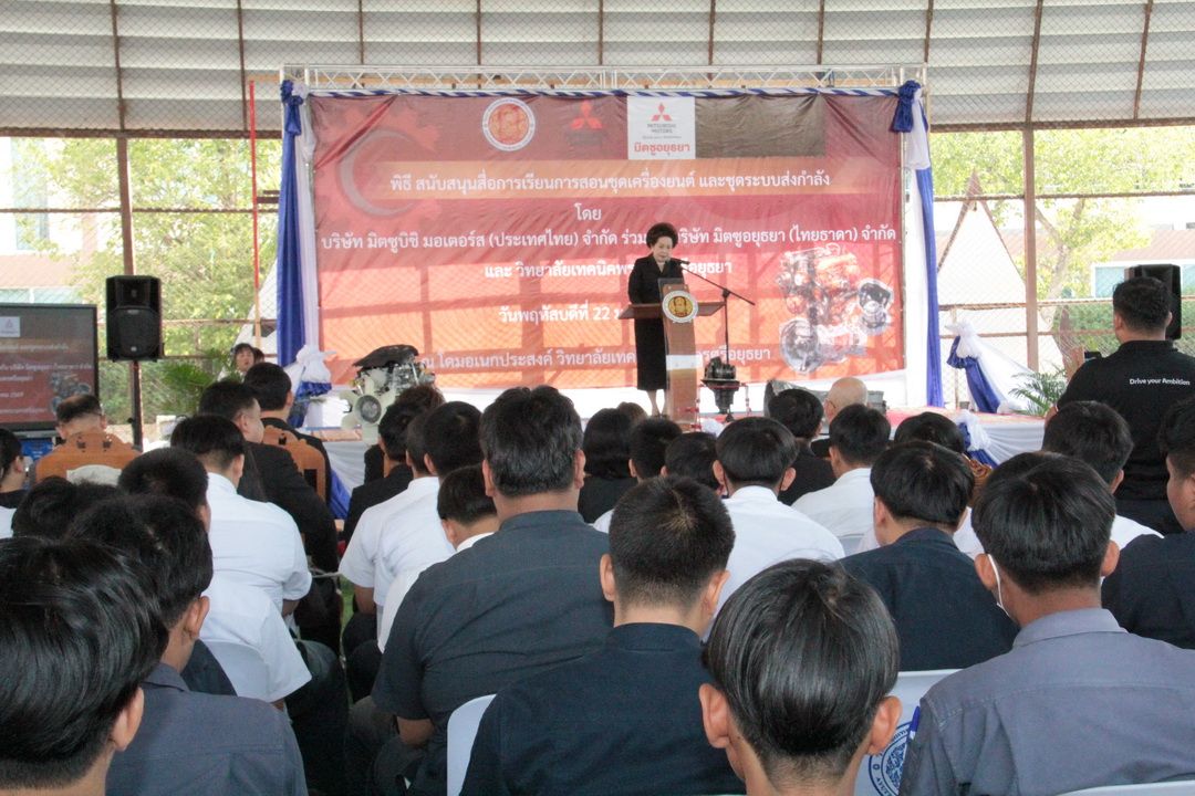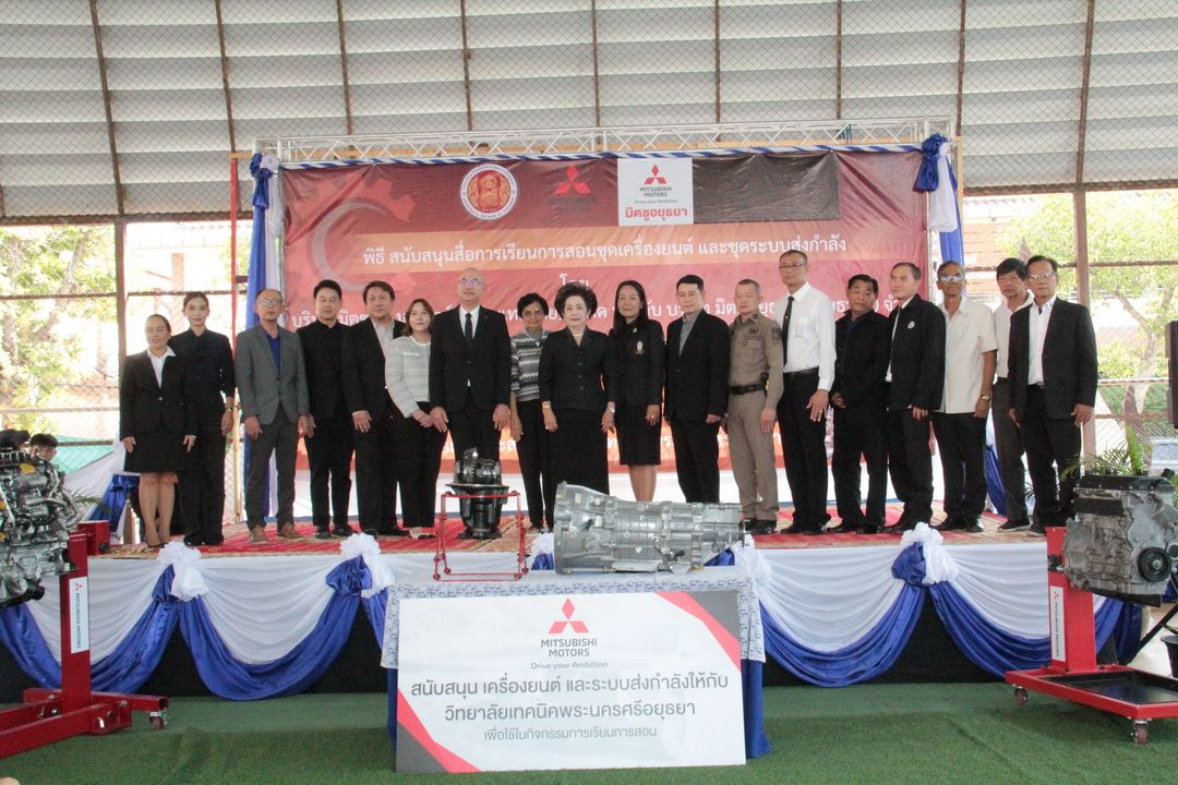 น.ส.มยุรี ศรีระบุตร ผู้อำนวยการวิทยาลัยเทคนิคพระนครศรีอยุธยา กล่าวว่า การรับมอบสื่อการเรียนการสอนชุดเครื่องยนต์และชุดระบบส่งกำลังจากสถาบันการศึกษาและฝึกอบรม บริษัทมิตซูบิชิ มอเตอร์ส (ประเทศไทย) จำกัด ในครั้งนี้มีวัตถุประสงค์เพื่อให้คณะครูแผนกวิชาช่างยนต์ วิทยาลัยเทคนิคพระนครศรีอยุธยา ได้มีสื่อการเรียนการสอนที่ทันสมัยนำไปถ่ายทอดให้กับนักศึกษาและชุมชนได้เรียนรู้ผ่านการปฏิบัติจริง ซึ่งสอดคล้องกับเป้าหมายในการมีส่วนร่วมส่งเสริมการศึกษาของไทย โดยให้โอกาสนักเรียนเข้าถึงเทคโนโลยียานยนต์ที่ทันสมัย