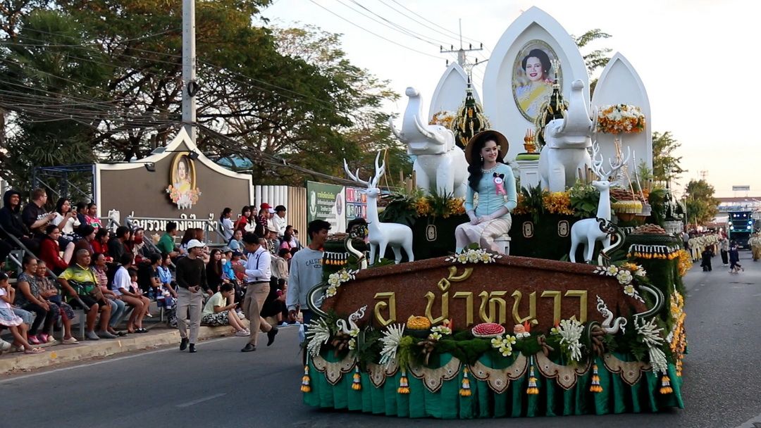 ไฮไลต์สำคัญอยู่ที่ขบวนแห่รถบุปผชาติจากแต่ละอำเภอและหน่วยงานเอกชน ที่ร่วมกันออกแบบรถอย่างวิจิตรบรรจง สะท้อนถึงวิถีชีวิตชาวไร่มะขามและความหลากหลายทางวัฒนธรรม โดยมี ‘ธิดามะขามหวาน’ นั่งประจำรถแจกยิ้มสร้างความตื่นตาตื่นใจให้แก่นักท่องเที่ยวตลอดเส้นทางขบวนแห่เข้าสู่สนามหน้าศาลากลางจังหวัด