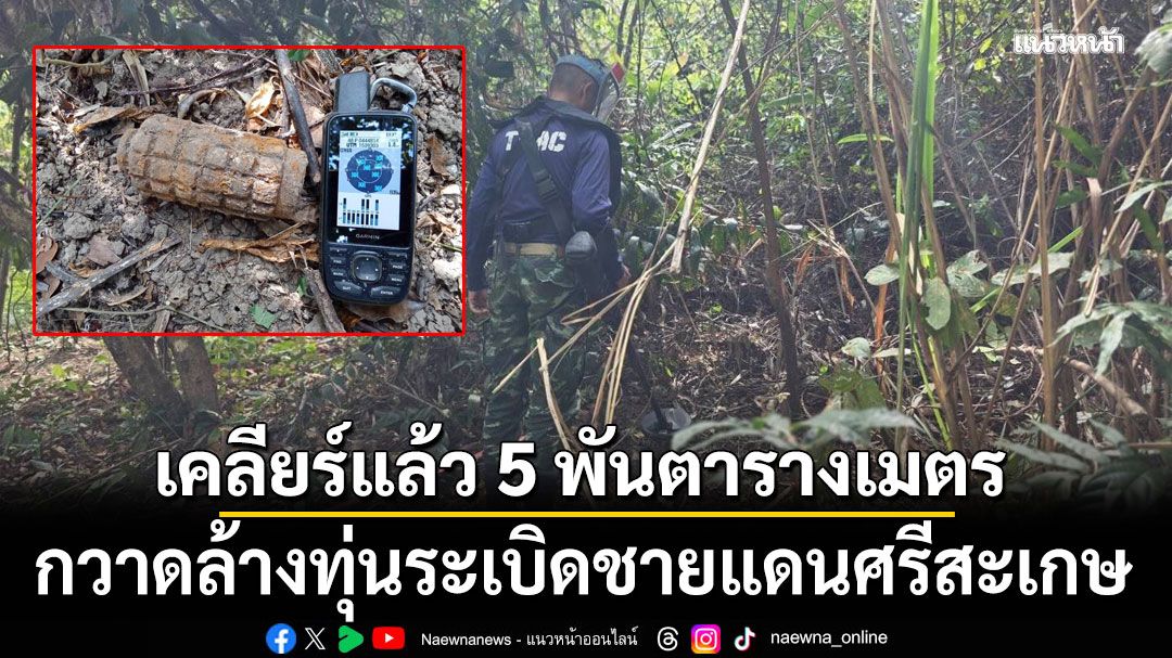 ศทช.ลุยเก็บกู้ทุ่นระเบิดศรีสะเกษ เคลียร์พื้นที่ชายแดนไทย–กัมพูชาแล้วกว่า 5 พัน ตร.ม. พบวัตถุระเบิดรวม 16 รายการ
