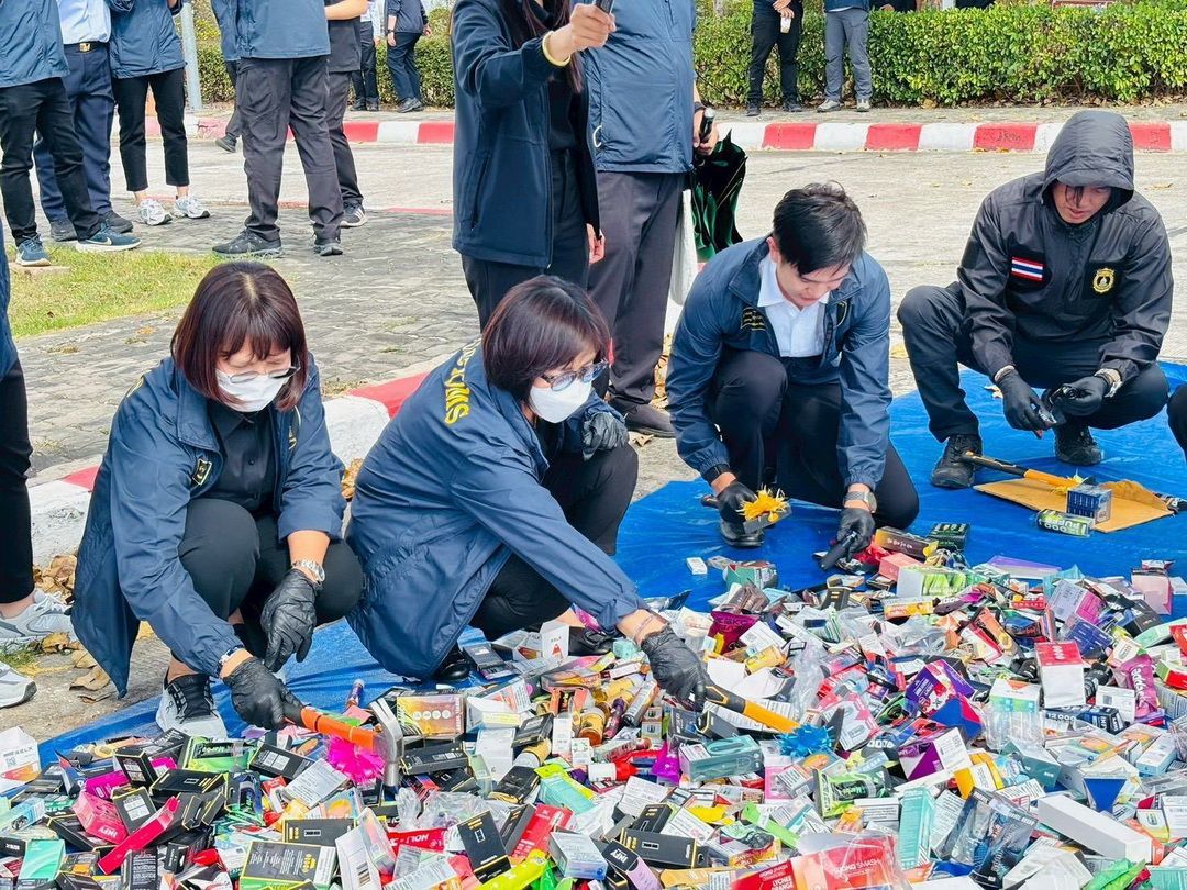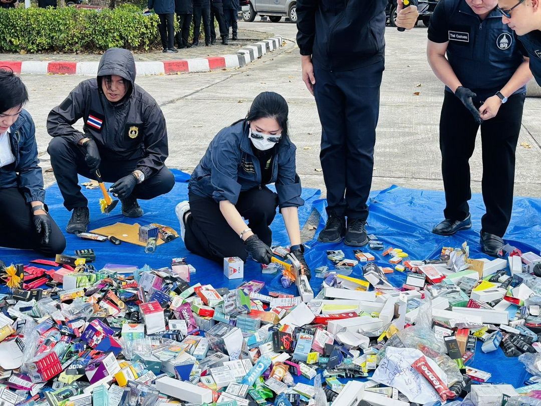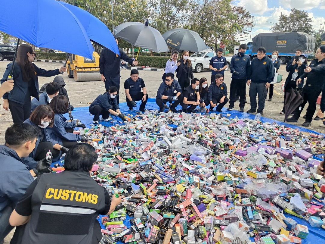 กวาดล้างสินค้าเถื่อน! ศุลกากรมุกดาหารทำลาย ‘บุหรี่ไฟฟ้า-ยาเซ็กซ์-เครื่องสำอาง’ ล๊อตใหญ่ มูลค่าทะลุ 3.3 ล้านบาท หลังคดีถึงที่สุด