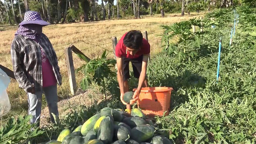 ผู้สื่อข่าวรายงานว่า นายบัณฑิต เหมือนนอง เกษตรกรบ้านคูขุด อ.สทิงพระ จ.สงขลา ระดมญาติพี่น้องช่วยเก็บแตงโมและจ้างคนงานอีก 4 คน ช่วยขนแตงโม 2 วัน ประมาณ 12-13 ตัน ส่งให้แม่ค้าที่นำรถมารอรับถึงสวนแตงโม วันนี้แตงโมราคาดี ขนาดใหญ่น้ำหนัก 3 – 5 กก.ๆละ 11 บาท ขนาดกลาง 2-3 กก.ๆละ 8 บาทและขนาดเล็กต่ำกว่า 2 กก.ลงไปกก.ละ 6 บาท โดยฝ่ายที่มีหน้าที่เก็บแตงโมจะเก็บจากด้านนอกสุดเข้าหาด้านในจนสุดแปลง เก็บแตงโมกองไว้เป็นระยะๆ หลังจากนั้นฝ่ายจัดเก็บก็จะใช้รถเข็นช่วยกันเก็บแตงโมใส่ให้เต็มแล้วลากออกมากองรวมกันไว้หรือเก็บใส่เข่งยกออกมากองรวมกันโดยใช้วิธีโยนแตงโมที่กองอยู่โยนรับต่อกันใส่ในรถยนต์ เพื่อไปชั่งน้ำหนักพร้อมรถและหักน้ำหนักรถออกและนำยอดน้ำหนักมารวมกัน โดยตกลงขายแบบคละขนาดใหญ่และขนาดกลางรวมกันในราคากิโลกรัมละ 10 บาทโดยไม่ต้องคัดขนาด ส่วนขนาดเล็กใช้วิธีชั่งใส่เข่งครั้งละ 60 กก.และหักน้ำหนักเข่งออกหลังจากนั้นจะนำยอดน้ำหนักมารวมกันเช่นเดียวกัน