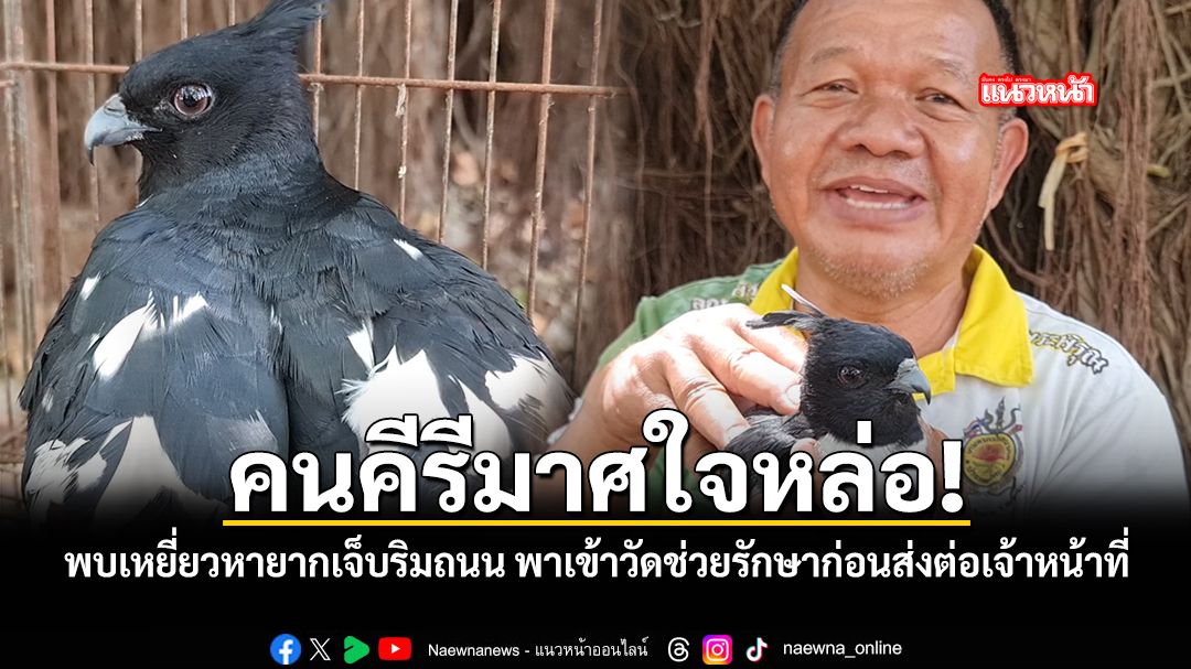 นายเสมอ อินนา ชาวบ้านคีรีมาศ บอกว่า เจอนกตัวนี้ได้รับบาดเจ็บอยู่บนถนนแถว ต.หนองกระดิ่ง อ.คีรีมาศ จึงจับขึ้นรถนำมาฝากไว้ที่วัดโตนด ให้พระและชาวบ้านช่วยกันดูแลรักษาอาการบาดเจ็บที่โคนปีก ตอนนี้อาการเริ่มดีขึ้นมาก จึงเตรียมมอบให้เจ้าหน้าที่สำนักบริหารพื้นที่อนุรักษ์ที่ 14 (ตาก) นำไปดูแลต่อ