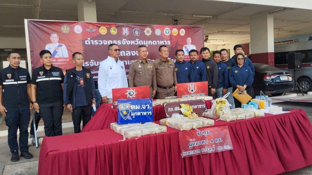 ตำรวจมุกดาหารเปิดปฏิบัติการ ‘P4-Spider Web’ บุกรวบแก๊งค้ายาคาบ้านพัก ยึดไอซ์ 50 กิโลกรัมซุกรถสไลด์ พร้อมอายัดทรัพย์สินกว่า 6 ล้านบาท