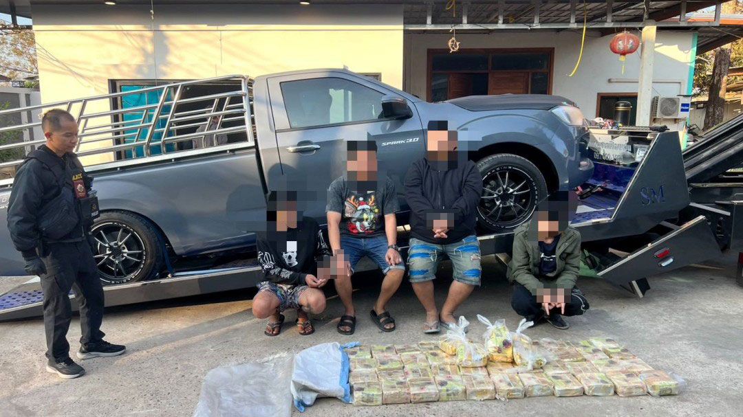 สืบเนื่องจาก เมื่อวันที่ 26 ม.ค. 69 เวลา 05.00 น. ชุดสืบสวนได้รับแจ้งจากสายลับว่ามีการบรรจุยาไอซ์ลงในรถยนต์สไลด์ที่บ้านพักหลังหนึ่งในซอยตาดแคน 13 ต.มุกดาหาร เจ้าหน้าที่จึงนำกำลังเข้าตรวจค้น พบกลุ่มชายหลายคนพยายามวิ่งหนีแต่ถูกควบคุมตัวไว้ได้ 4 ราย จากการตรวจสอบรถยนต์สไลด์ อีซูซุ สีดำ ทะเบียน กทม. พบยาไอซ์บรรจุในห่อชาสีเหลืองยี่ห้อดัง จำนวน 50 กิโลกรัม ซุกซ่อนอยู่ในช่องเก็บแบตเตอรี่ที่ดัดแปลงเป็นพิเศษ