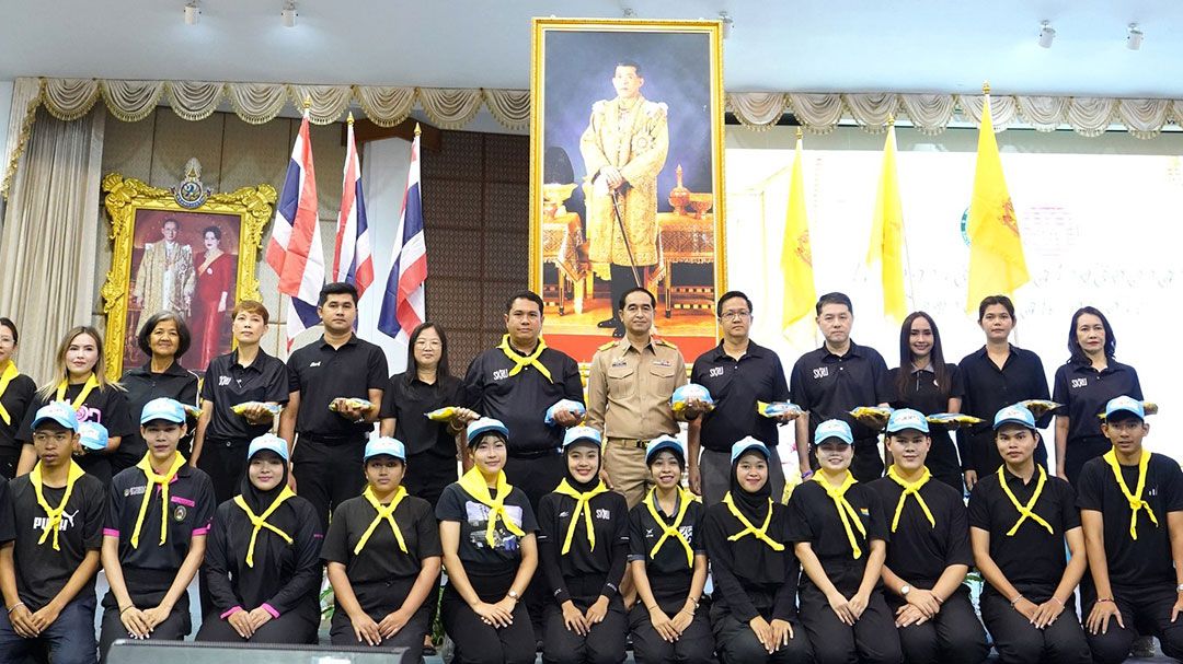 คณะมนุษยศาสตร์และสังคมศาสตร์ มหาวิทยาลัยราชภัฏสงขลา (มรภ.สงขลา) จัดพิธีรับมอบสิ่งของพระราชทาน “หมวก-ผ้าพันคอ” จิตอาสาพระราชทาน 904 ให้แก่ผู้เข้ารับมอบสิ่งของพระราชทาน จำนวน 421 คน ภายใต้โครงการจัดงานสร้างจิตอาสาเพื่อชาติ ศาสน์ กษัตริย์ ประจำปี 2569 ณ หอประชุมเฉลิมพระเกียรติ 80 พรรษาฯ โดยมี ผศ.พิเชษฐ์ จันทวี อธิการบดี มรภ.สงขลา เป็นประธานในพิธี ในการนี้ ผศ.ดร.รัชชพงษ์ ชัชวาลย์ คณบดีคณะมนุษยศาสตร์และสังคมศาสตร์ ร่วมเป็นเกียรติในพิธี พร้อมด้วยคณะผู้บริหาร คณาจารย์ และบุคลากร โดยมี อาจารย์ ดร.โชติกา รติชลิยกุล รองคณบดีฝ่ายพัฒนานักศึกษาและศิษย์เก่าสัมพันธ์ คณะมนุษยศาสตร์และสังคมศาสตร์ มรภ.สงขลา กล่าวถึงที่มาและความสำคัญของการจัดพิธีในครั้งนี้