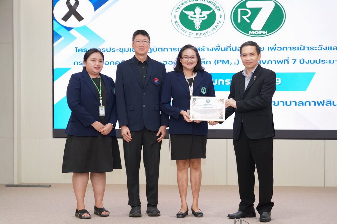 ภายในงานได้มีการมอบรางวัลเพื่อสร้างขวัญกำลังใจแก่หน่วยงานที่มีผลงานโดดเด่น ได้แก่ โรงพยาบาลกาฬสินธุ์ โดยได้รับเกียรติบัตรพื้นที่ต้นแบบประเภทห้องปลอดฝุ่นในหน่วยบริการสาธารณสุข และศูนย์พัฒนาเด็กเล็กปลอดฝุ่นต้นแบบ ได้แก่ เทศบาลตำบลคำม่วง, อบต.นาบอน, โรงพยาบาลคำม่วง, สสอ.คำม่วง และ รพ.สต.บ้านนาบอน