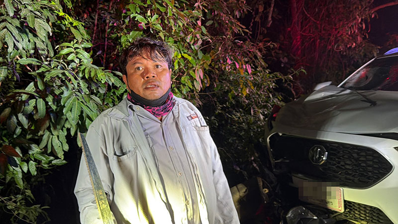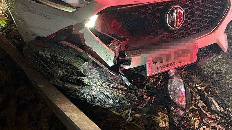 ที่เกิดเหตุเป็นบริเวณไหล่เขา พบรถยนต์เก๋ง ยี่ห้อเอ็มจี สีขาว ทะเบียนกรุงเทพมหานคร ชนกับรถจักรยานยนต์ ซึ่งอัดติดอยู่ใต้ท้องรถ ขณะที่ผู้ขับขี่รถจักรยานยนต์กระเด็นร่วงลงไปในไหล่เขาลึกกว่า 5 เมตร