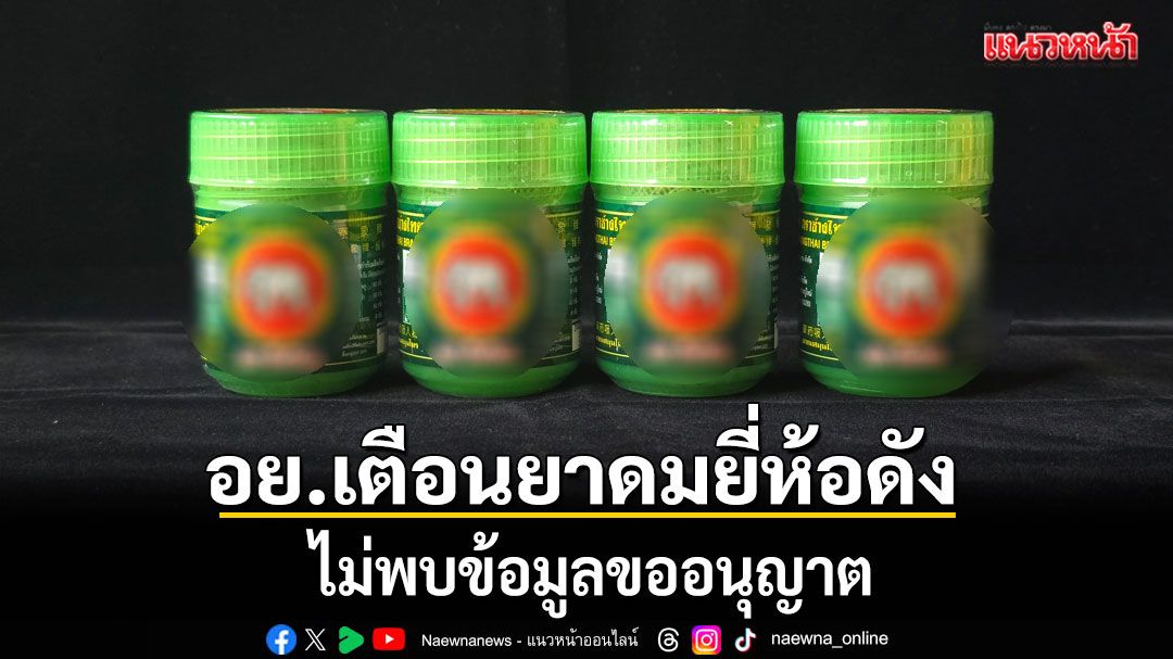 สำนักงานคณะกรรมการอาหารและยา ได้รับเรื่องร้องเรียนจากผู้บริโภคให้ตรวจสอบผลิตภัณฑ์ยาดมสมุนไพร ตราช้างไทย ขนาด 2 กรัม เลข G508/68 LOT 24010101 MFG250625 EXP 250628 เนื่องจากไม่พบข้อมูลการอนุญาตผลิตภัณฑ์