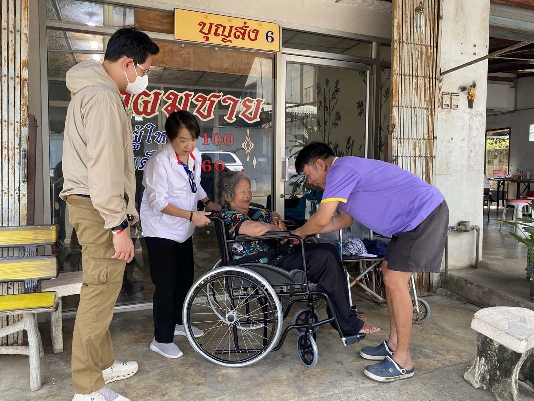 ส่วนรถเข็นวีลแชร์คันที่สอง มูลนิธิฯ ลงพื้นที่อำเภอบ้านโป่ง จังหวัดราชบุรี เพื่อมอบให้แก่ นางล้ง เซี่ยงว่อง อายุ 94 ปี ผู้สูงอายุติดเตียงที่มีโรคประจำตัวหลายโรค อาทิ เบาหวาน ความดันโลหิตสูง และภาวะสะโพกหัก ส่งผลให้ไม่สามารถเดินได้มานานกว่า 10 ปี จำเป็นต้องเดินทางไปพบแพทย์เป็นประจำทุกเดือน แต่การเคลื่อนย้ายในแต่ละครั้งเป็นไปด้วยความยากลำบาก ครอบครัวจึงขอรับความช่วยเหลือผ่านรายการสถานีประชาชน เพื่อให้การเดินทางไปรับการรักษาพยาบาลเป็นไปอย่างปลอดภัยและสะดวกมากยิ่งขึ้น